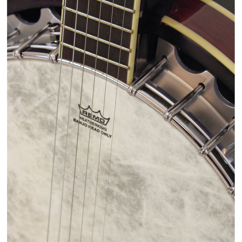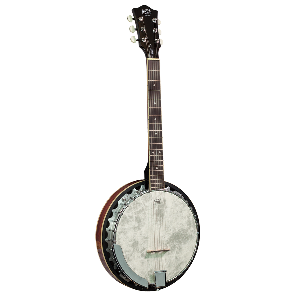 The Barnes & Mullins BJ306 ‘Perfect’ 6 string guitar banjo is a perfect starting point for a guitar player, offering an authentic bluegrass banjo tone, but played and tuned like a standard guitar. A low action and quick neck make this banjo a joy to play. It features a closed back mahogany resonator to deliver an authentic, punchy tone with a genuine Remo Vellum head. Geared machine heads ensure improved tuning stability.