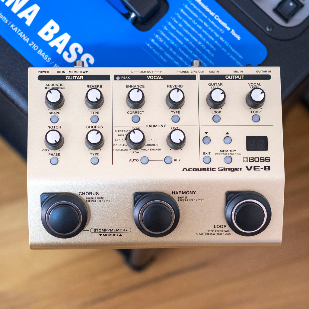 For singer/songwriters who play acoustic guitar, it’s a competitive, crowded world out there. The VE-8 Acoustic Singer delivers that extra edge you need to stand out and shine, supporting you with professional BOSS sound every time you perform. Simple to use, the VE-8 provides studio-quality voice and guitar processing plus impressive real-time harmonies and looping in one compact, go-everywhere package. With such great sound and powerful creative features at your command, you’re destined to bring down the house everywhere you play.