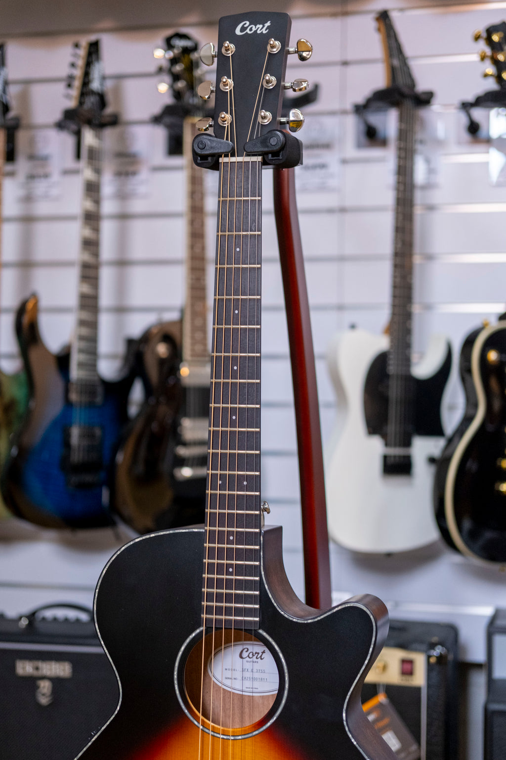 As Cort’s vision of the modern acoustic-electric, the SFX Series features Cort’s own slim body shape (83*83mm) with cutaway, modern V-shape neck profile for enhanced playability and speed, arched back for improved resonance, jumbo frets and electronics. SFX-E features a Solid Spruce top, Mahogany back and sides, Ovangkol fingerboard.