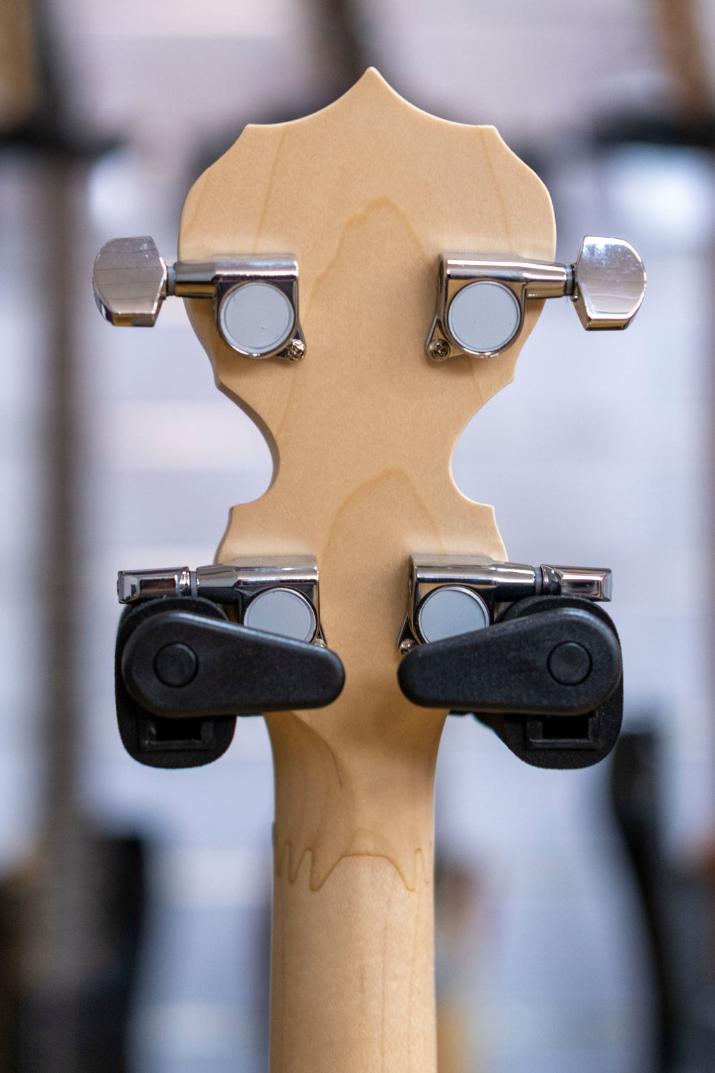 The Goodtime Two banjo shares many similarities with the Goodtime Openback, featuring a natural blonde maple vibe with a satin finish that offers protection and style. At the heart of the Goodtime Two is the same 3-ply violin-grade maple rim found in the original Goodtime, but when paired with the 3-ply resonator, it produces a rich, golden tone with significantly increased volume compared to its openback counterpart.