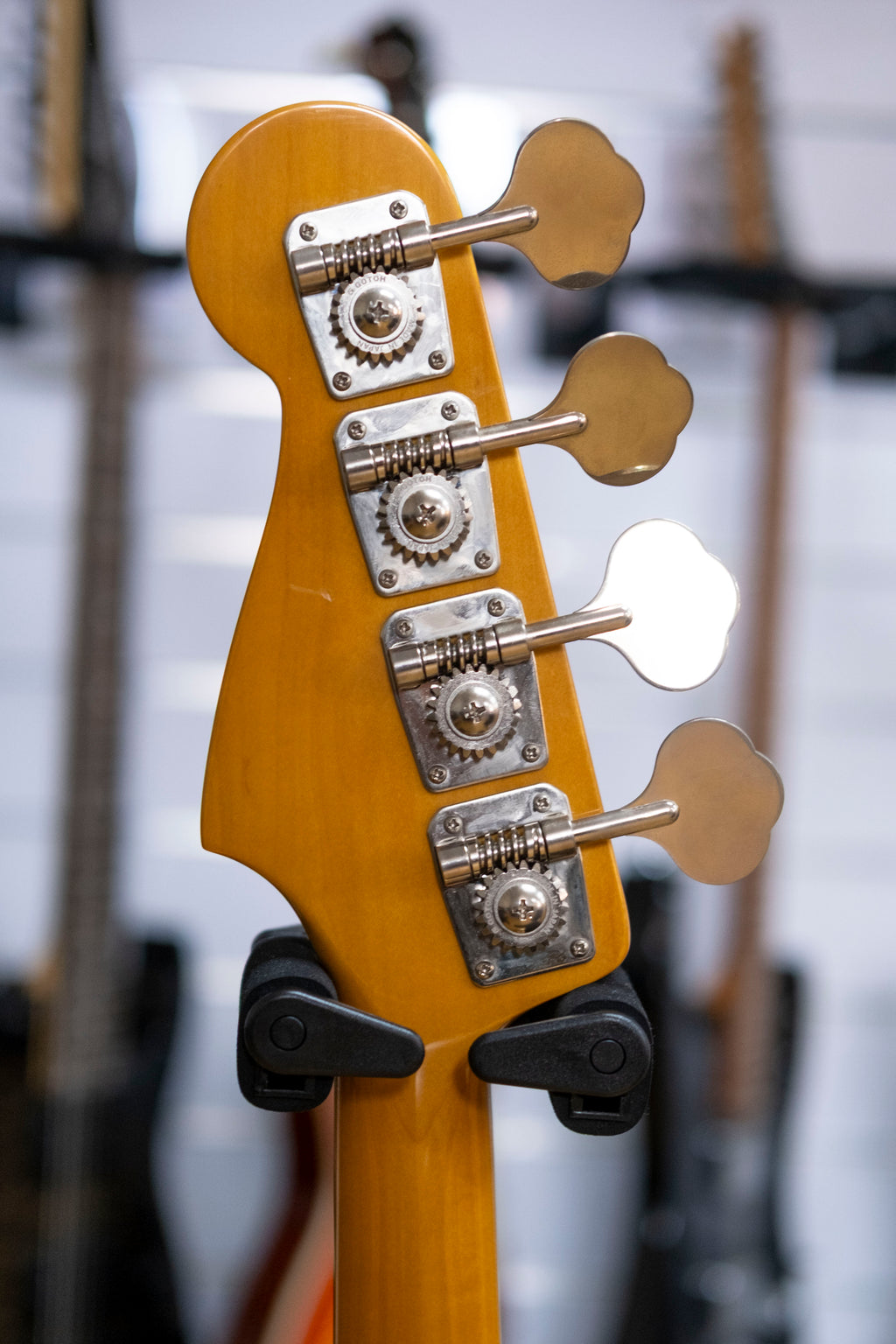 The Fender C60JB bass guitar, made in Japan in 2017, combines vintage style with modern reliability. Featuring the iconic Fender Jazz Bass design, this model delivers a smooth, comfortable playing experience with a balanced tone suitable for various genres. Equipped with two punchy single-coil pickups, the C60JB captures that signature Fender growl, offering a versatile range from deep, rich lows to clear, articulate highs. Whether you're playing jazz, rock, or funk, this Japanese-made bass offers exceptional craftsmanship and tone, making it a great choice for bassists seeking both quality and performance.