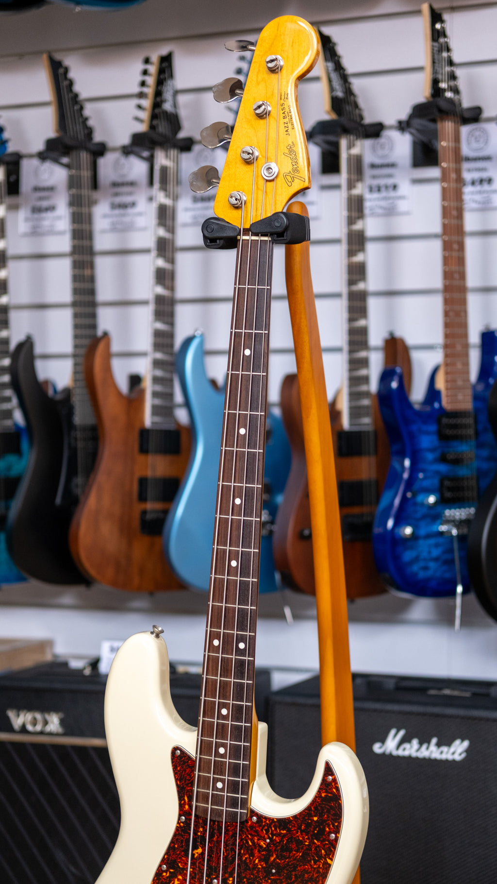 The Fender JB62, made in Japan in 1994, is a classic Jazz Bass that offers exceptional craftsmanship and tone. Known for its smooth, contoured body and fast-playing neck, this model delivers that unmistakable Fender Jazz Bass sound—rich lows, punchy mids, and bright highs—thanks to its dual single-coil pickups. With its vintage-inspired design, the JB62 is perfect for players seeking that iconic Fender tone with the added benefit of Japanese precision. Whether you’re playing in the studio or on stage, this bass provides the perfect balance of style, playability, and performance.