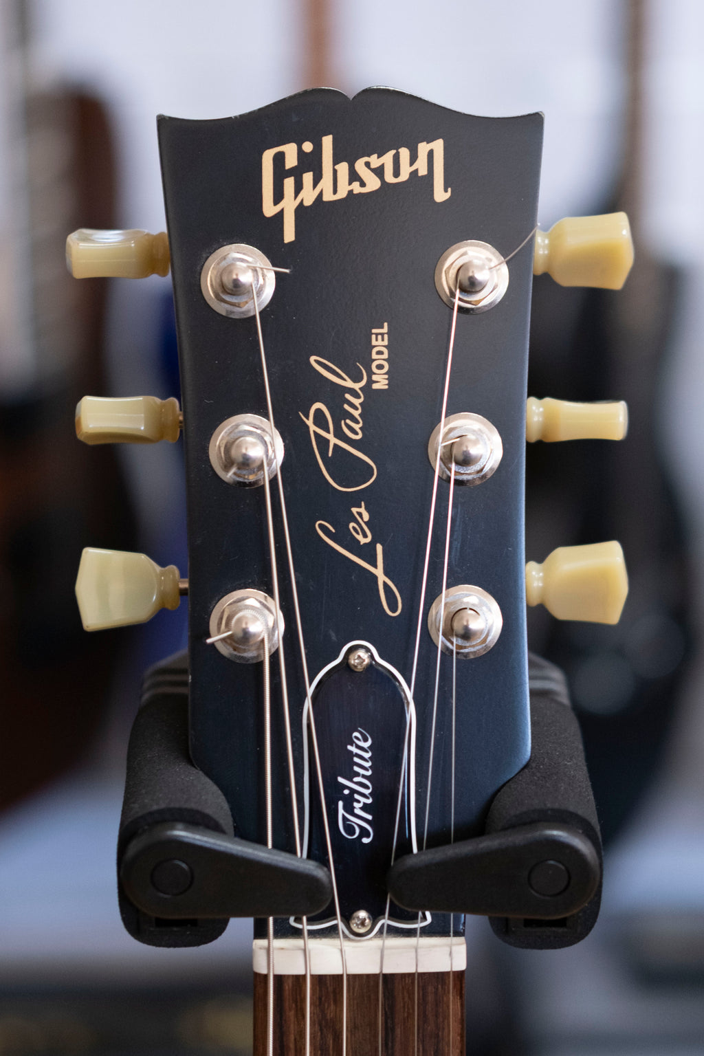 The Les Paul Tribute captures the vibe, feel and tonality of a traditional Les Paul. A rounded maple neck profile and ultra-modern weight relief make the Gibson Les Paul Studio Tribute a pleasure to play. A mahogany body, maple top and pair of 490 R & T humbucking pickups with Alnico II magnets provide classic tone, power and sustain.