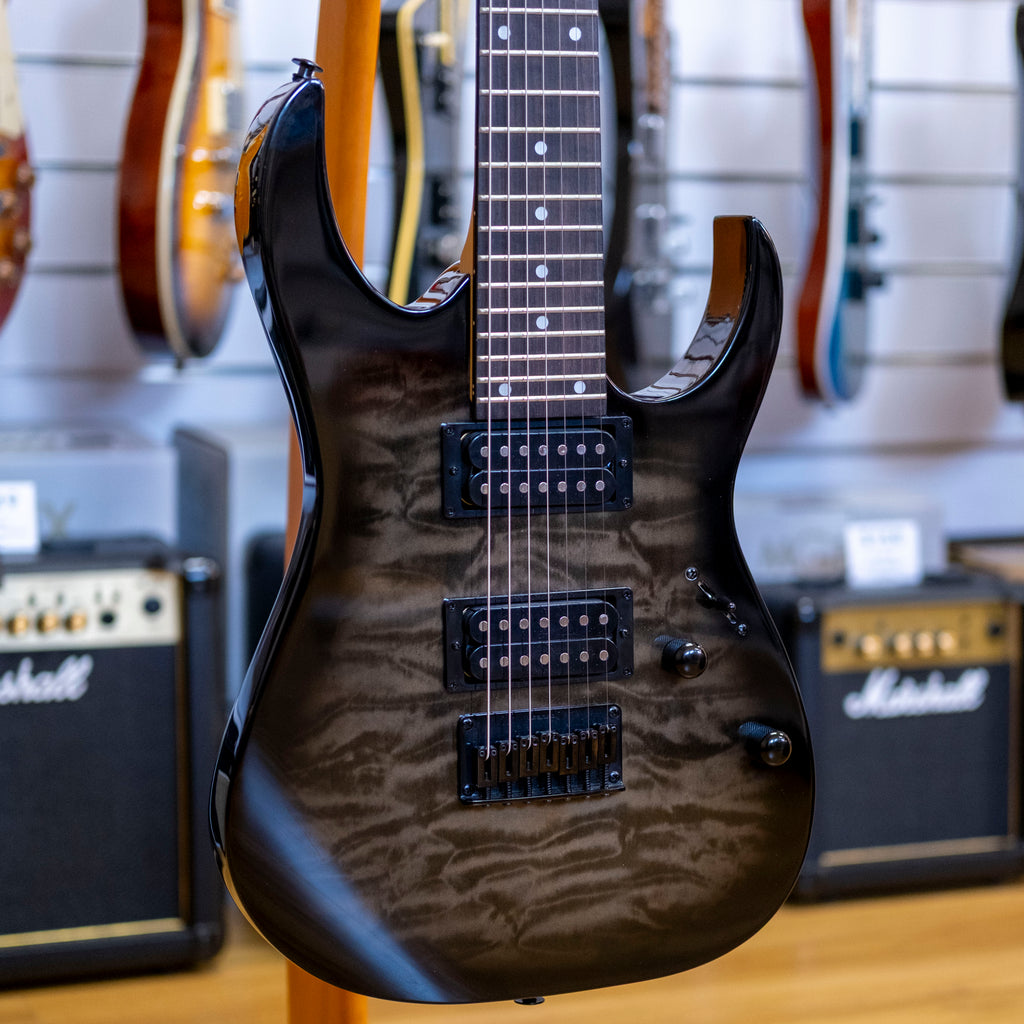 The RG is the most recognizable and distinctive guitar in the Ibanez line. Three decades of metal have forged this high-performance machine, honing it for both speed and strength. Whether you favor a hardtail (fixed) bridge or our industry-leading locking tremolo system, the RG is a precision instrument.