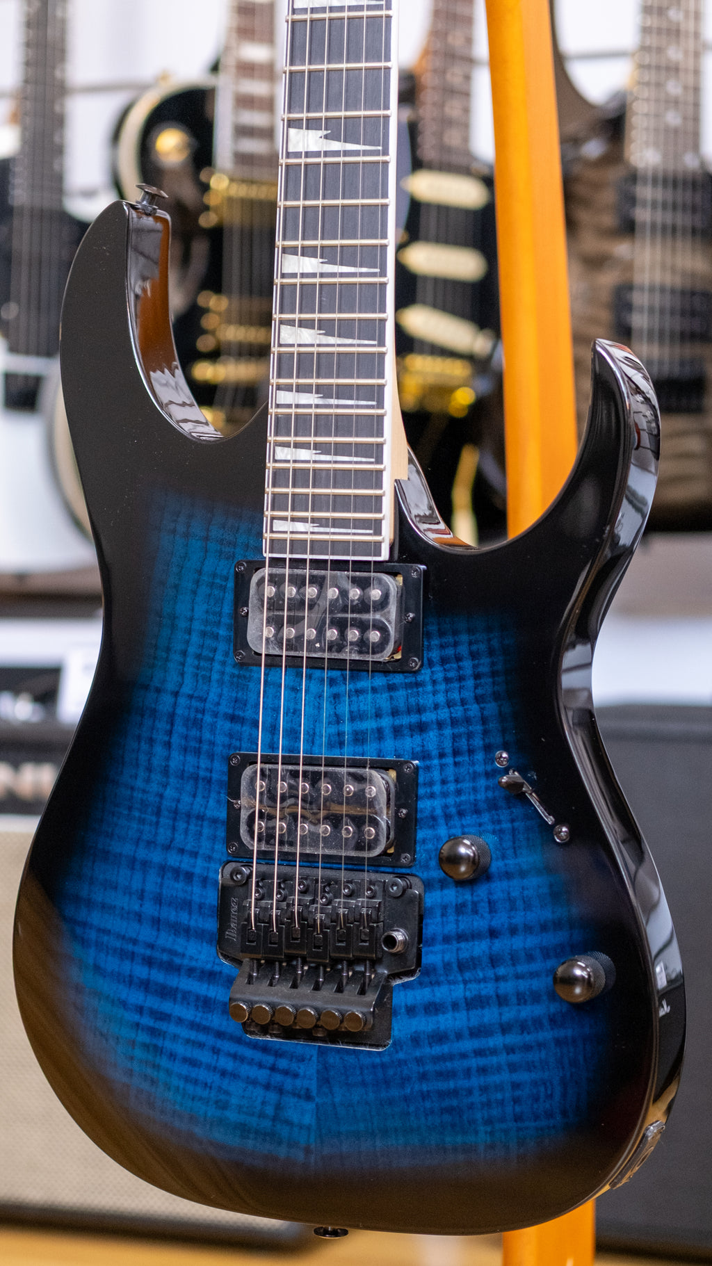 The Ibanez Gio GRG320FA TBS Electric Guitar, adorned in a mesmerizing Transparent Blue Sunburst finish, is a remarkable addition to the iconic RG series. Crafted for over three decades with a focus on speed and strength, the RG series has become synonymous with high-performance guitars. The GRG320FA, part of the GIO series, offers Ibanez quality and performance in a more affordable package, presenting an excellent choice for players seeking a precision instrument without breaking the bank.