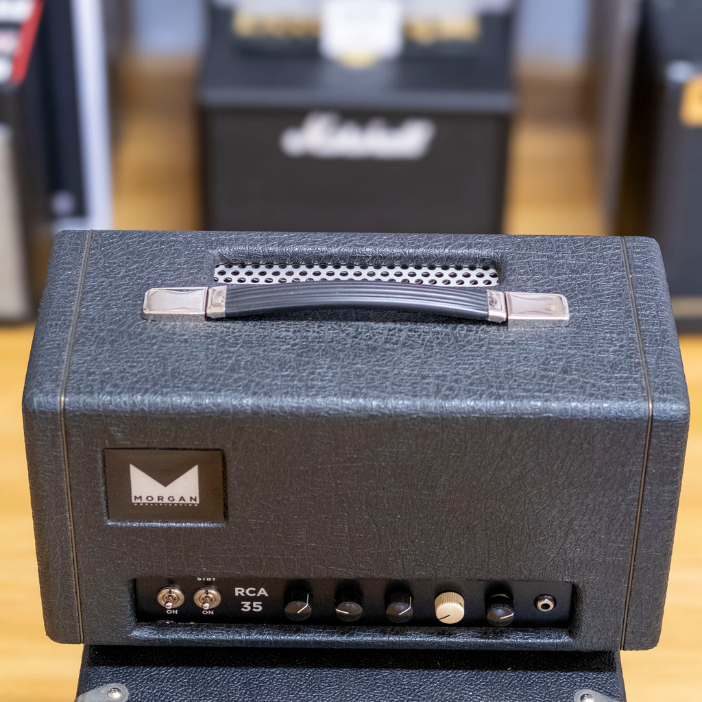 The Morgan RCA35 stands out as one of the finest examples of “big bottle” American amp tone. Delivering 35 watts, it hits the sweet spot for both studio work and live performance. Clean tones are chimey, full, and rich, with ample headroom that makes the RCA35 an exceptional pedal platform. When pushed, it delivers warm, highly touch-sensitive overdrive. The master volume allows you to dial in the perfect edge-of-breakup sound that so many players are chasing.