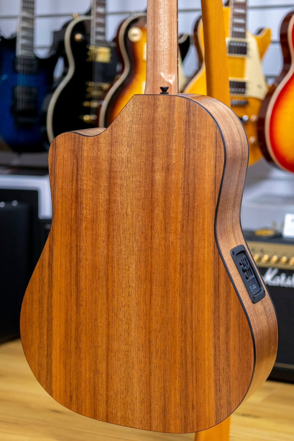 Pratley's Classic Series features all solid Australian tonewood construction, AA Grade Johnstone River Teak fretboards and bridges, and Queensland Maple necks, along with Pratley's signature neck joint and bracing style. The dreadnought body provides classic, balanced tone, while extra adornments like an Australian Blackwood headstock cap, mother of pearl inlays, and a radial grain pattern rosette elevate the look of these fantastic guitars.