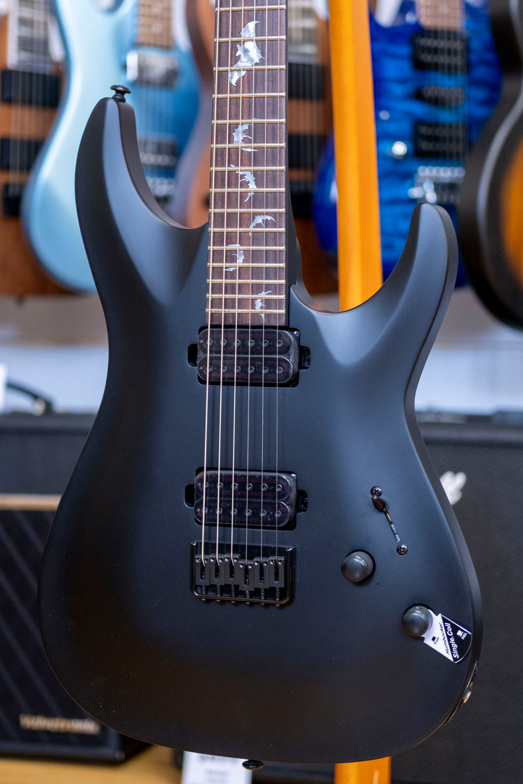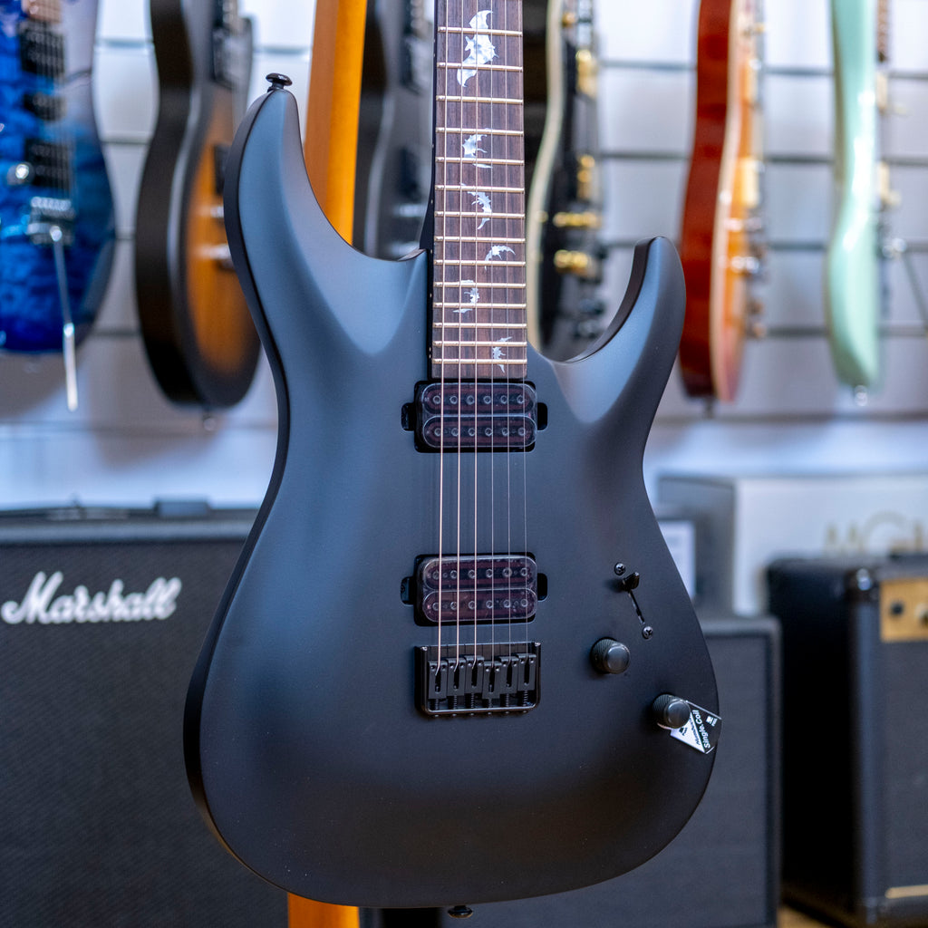 For fans of horror films from the late '70s and '80s, you're more than familiar with the name Damien. And like its fictional namesake, the Schecter Damien sows sweet sonic chaos and comes out smiling each time. This solidbody electric guitar is powered by a pair of Schecter Heretic humbucking pickups that create flaming hot tones for rock and metal. The satin-finished mahogany body is incredibly comfortable to play, thanks to deep cutaways, contoured body shape, and thin maple neck. But most of all, the Damien looks every bit as evil as it sounds, thanks to blacked-out hardware and custom Bat fingerboard inlays. If you're ready to take the plunge, the Schecter Damien will give you a playing experience that's hard to put into words.