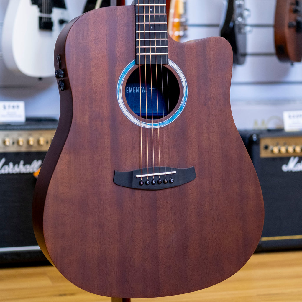 At the heart of every guitar in the Elemental range is a solid mahogany top, paired with mahogany backs and sides. This choice of tonewoods ensures a warm, rich, and resonant sound, with a well-rounded tonal character that suits a variety of playing styles, from intricate fingerpicking to bold strumming. Each instrument is built with Tanglewood’s signature slim mahogany neck, offering a comfortable and fast-playing experience, while the eboncore fingerboard adds durability and smoothness to your touch.